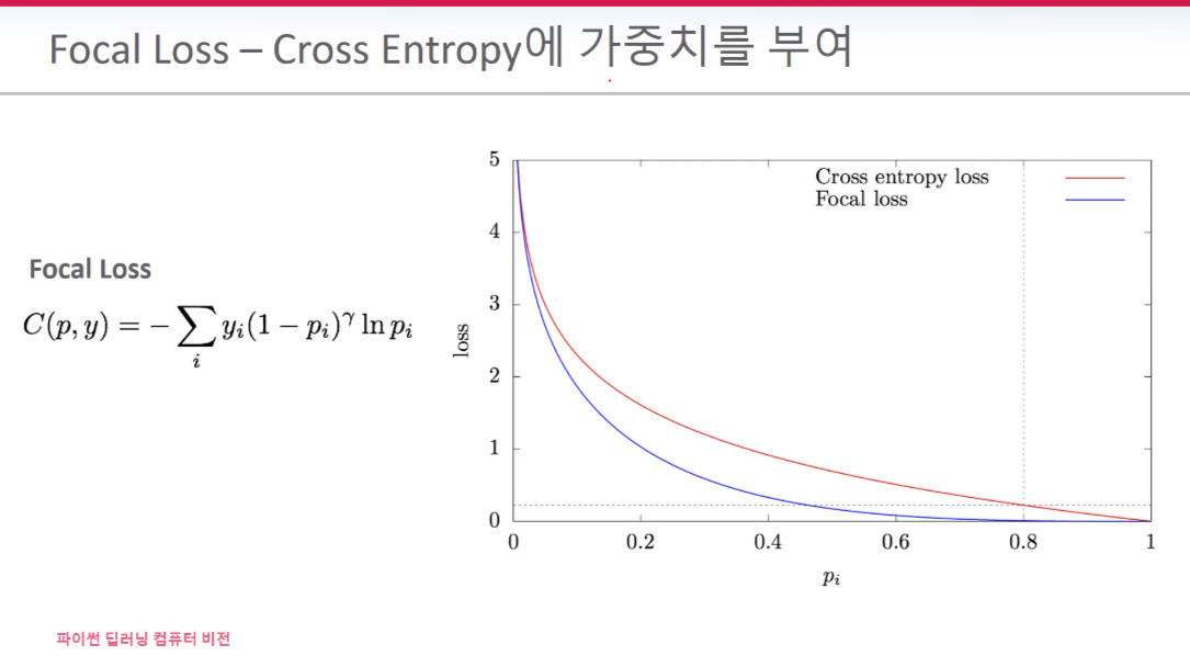 focal Loss는 Cross entropy에 가중치를 부여하는 개념이다.