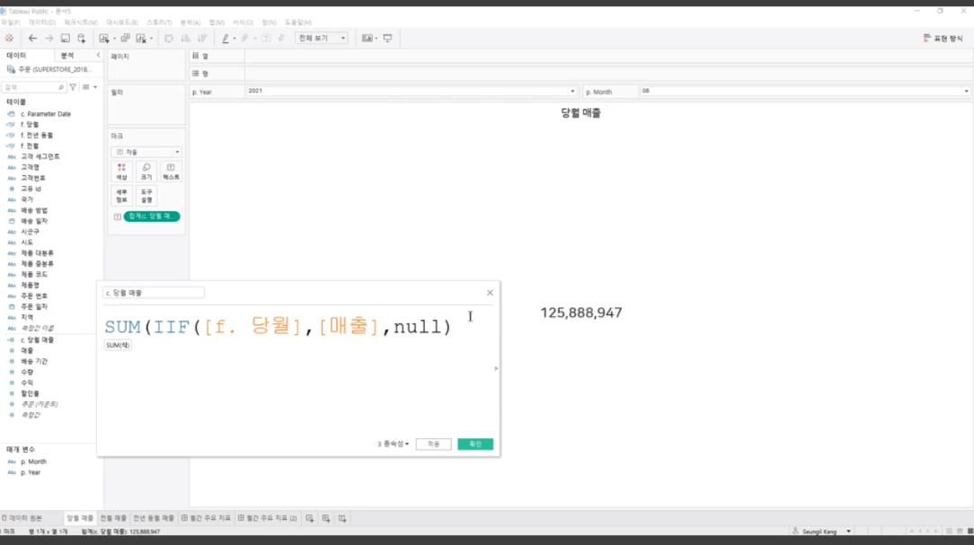 c. 당월매출을 위처럼 수정한 뒤, 마크에 새로 넣으면 완성이다.