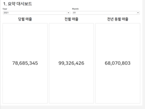 Year 와 month 변경에 따라 당월, 전월,전년 동월 매출이 나타나도록 만들기