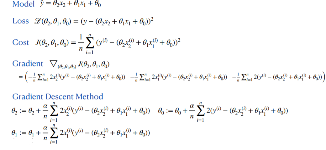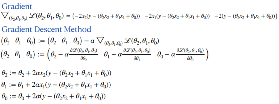 gradient을 구한뒤 GDM의 수식을 위 처럼 정리 할수 있겠다. th2은 X2에 영향을 받고, th1은 X1에 영향을 받는다는 점이 핵심이다.