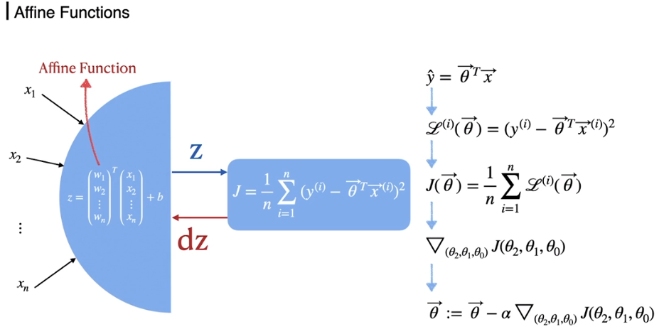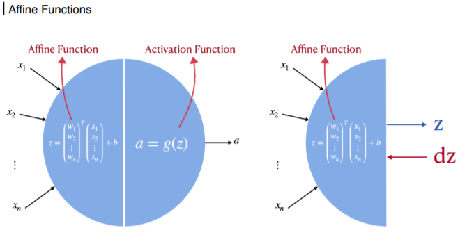 왼쪽 그림을 보면 둘로 나눠져 있다. 즉,affine funtion 뒤에 Activation이 붙든, Cross entropy가 붙든, soft max가 붙든, Loss 구하든지, cost를 구하든지 일절 상관이 없다. Affine은 단지 Z값을 전달하고, 자기가 내줬던 값에 대한 편미분 값을 받아서 업데이트 하는 것 뿐이다.
