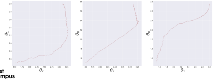 하단을 보면 공통적으로 보이는 것은 th2,1 쪽으로 먼저 빠르게 학습이 된 후에야 th0가 지그재그로 학습 되고 있다.