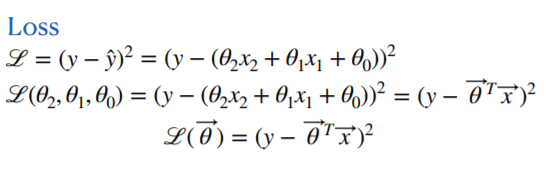 각각의 th,X의 벡터을 dot product을 시키면 맨 아래 수식처럼 간단한 형식으로 표현이 가능하다. Loss도 마찬가지로 같은 원리를 통해 간단하게 표한가능하다.