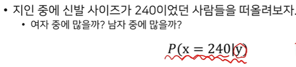 첫번째) y가 남자일 때 신발사이즈가 240일 확률은?